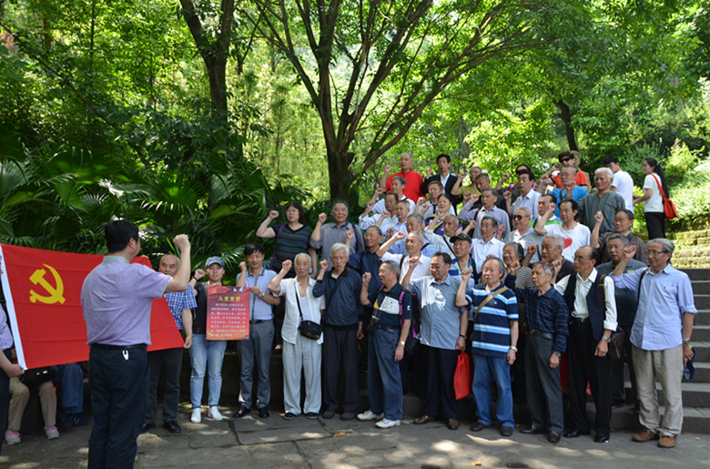 在白公館,離退休黨員面對鮮紅的黨旗,高舉右手,莊嚴(yán)地重溫入黨誓詞,字句鏗鏘,表達(dá)了全體黨員堅(jiān)定共產(chǎn)主義理想,雖然離開了工作崗位,仍然支持單位發(fā)展,擁護(hù)國家改革發(fā)展,堅(jiān)定黨的發(fā)展信念。