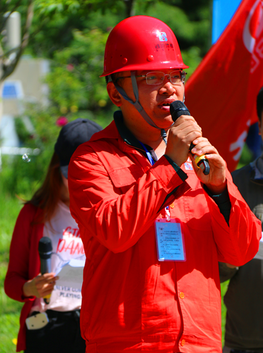 項(xiàng)目部現(xiàn)場總協(xié)調(diào)人陳新代表參加演練的施工單位發(fā)言