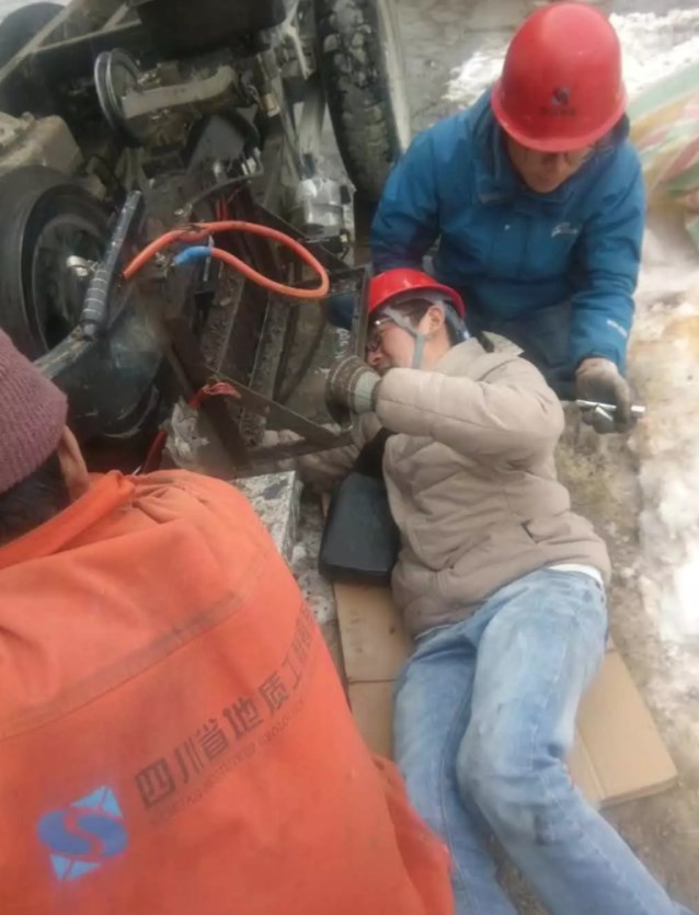 項(xiàng)目經(jīng)理馬天華立即召開(kāi)緊急會(huì)議,討論解決方案。由于項(xiàng)目工地距離縣城較遠(yuǎn),近距離的鄉(xiāng)鎮(zhèn)又沒(méi)有維修條件,無(wú)論是重新購(gòu)置設(shè)備,還是前往縣城維修設(shè)備或者請(qǐng)維修師傅前來(lái),都至少要耽誤一周的工期。為確保項(xiàng)目順利開(kāi)工,項(xiàng)目部成員馬天華、唐爽、李博等人討論決定,對(duì)已壞的三輪車(chē)進(jìn)行拆解,取下能用的柴油機(jī)及零件組裝到同一臺(tái)三輪車(chē)上。他們通過(guò)網(wǎng)上查閱資料,電話咨詢(xún)等,克服了工地現(xiàn)場(chǎng)零件缺失、材料不足的困難,在冰天雪地中完成了組裝任務(wù),最終使其中一輛三輪車(chē)實(shí)現(xiàn)運(yùn)轉(zhuǎn),可以勝任硐內(nèi)的棄渣轉(zhuǎn)運(yùn)工作。