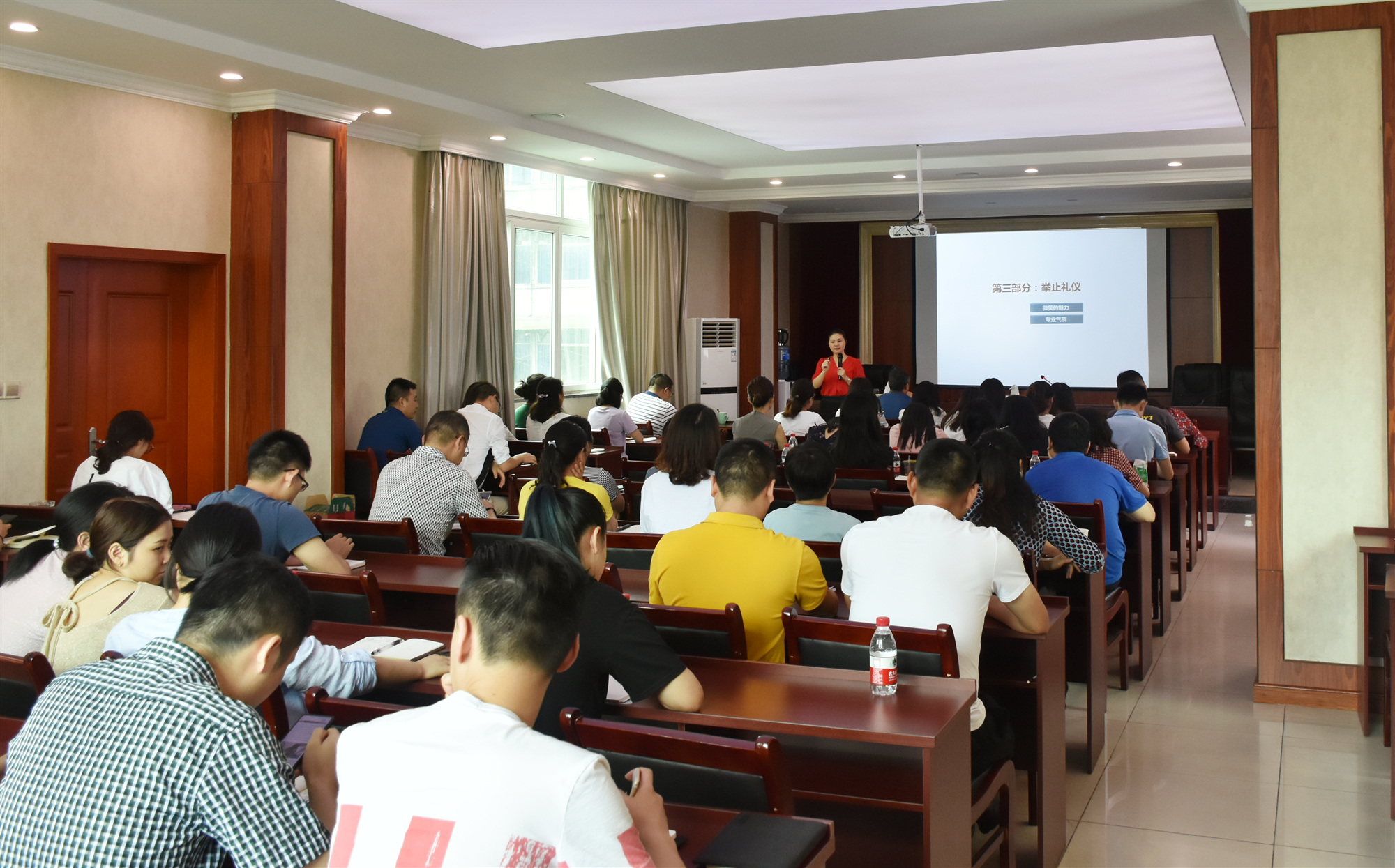 為全面提高院管理水平,切實(shí)提升職工業(yè)務(wù)素質(zhì)與綜合服務(wù)能力,6月20日,院綜合管理部組織開(kāi)展“2019年度實(shí)體辦公室工作人員、經(jīng)營(yíng)人員培訓(xùn)會(huì)”,特邀職業(yè)禮儀師張?zhí)鸷退拇ㄊ⊥艘圮娙耸聞?wù)廳辦公室主任彭思奇授課。黨委書(shū)記謝大軍親臨會(huì)場(chǎng),并作動(dòng)員講話,來(lái)自管理部門(mén)及二級(jí)實(shí)體的70余人參加了培訓(xùn)。